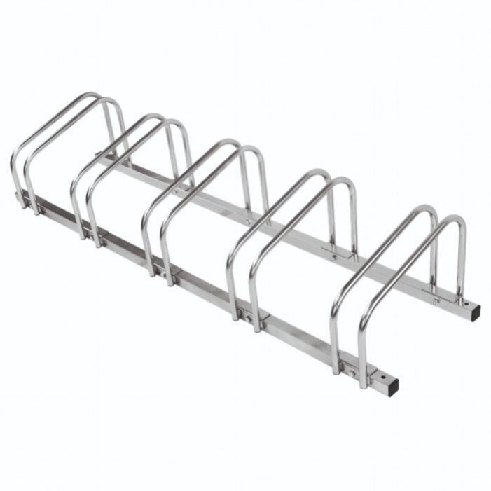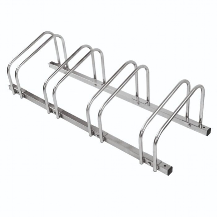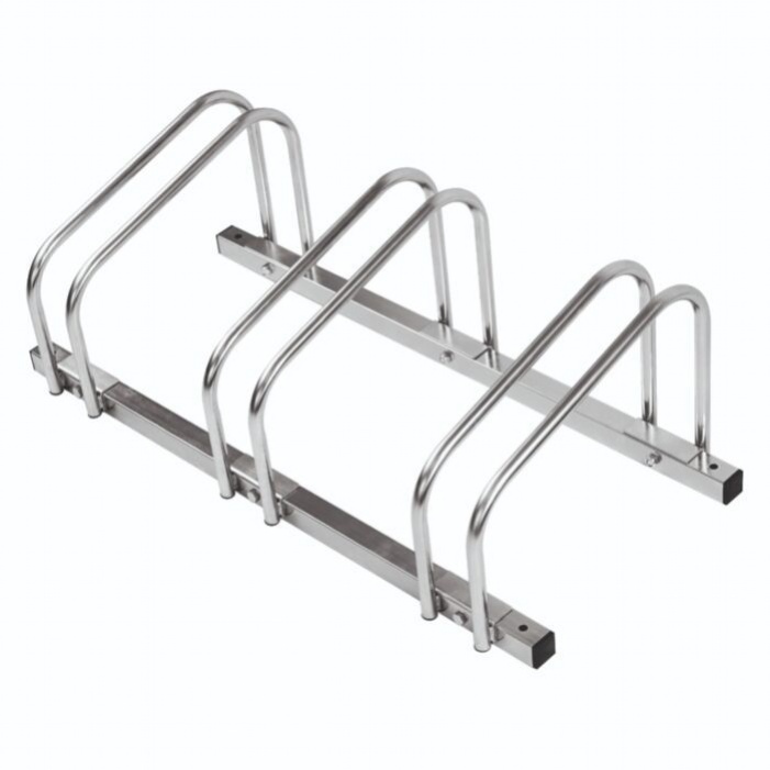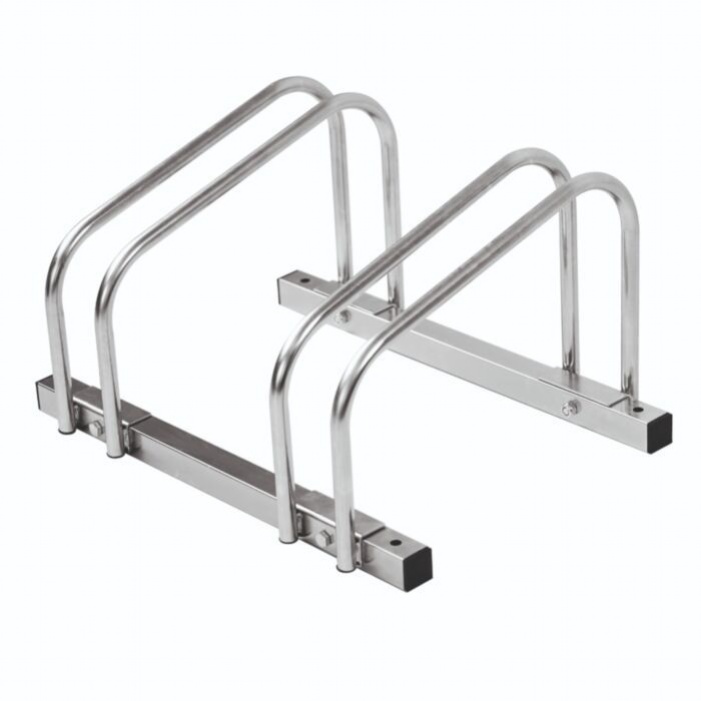This floor-mounted bike rack provides a cost-effective solution for secure bicycle storage in small businesses, residential complexes, and private homes.