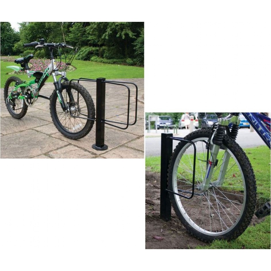 This floor-mounted bike Rack is a compact, durable solution for secure bicycle storage in residential and commercial settings. Available in single-sided (1 bike) or double-sided (2 bikes) configurations, each unit is made from fully welded mild steel and finished in powder-coated black for long-lasting performance and a sleek, modern look.