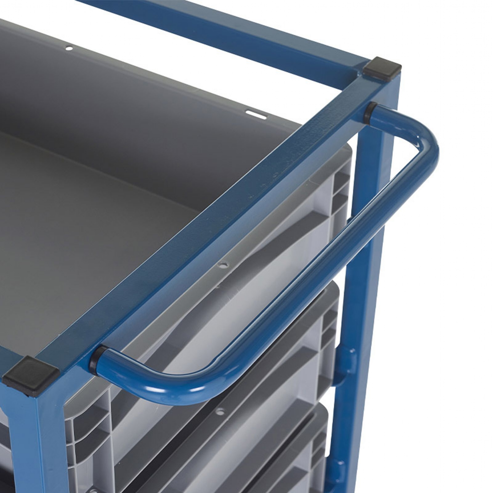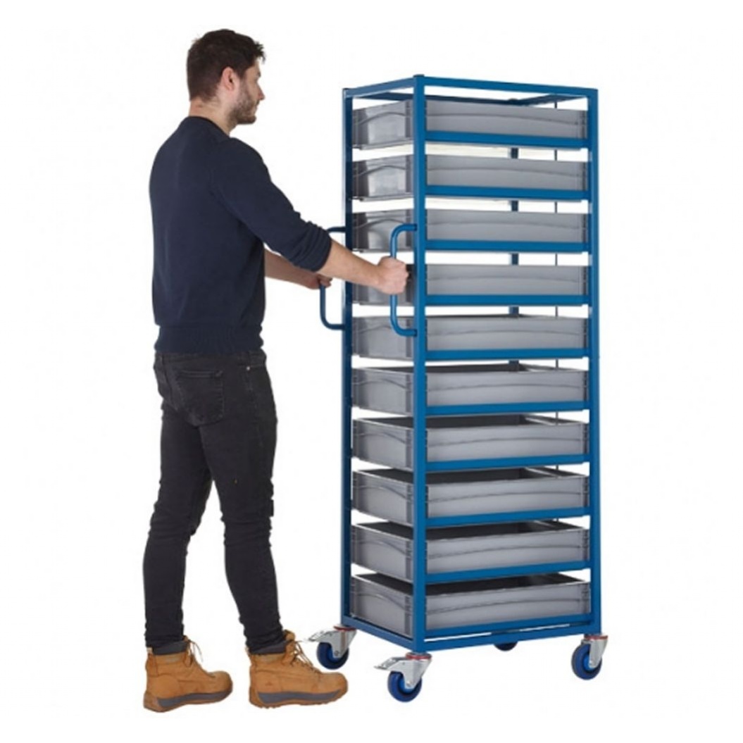 This tray trolley is designed for hygienic food storage and transport across the catering, hospitality, and food production sectors. Supplied with 10 x 120mm high food grade Euro containers, this UK-manufactured unit offers modular efficiency and robust performance.