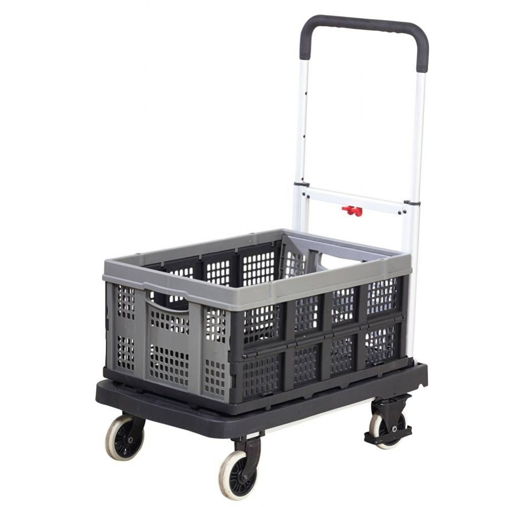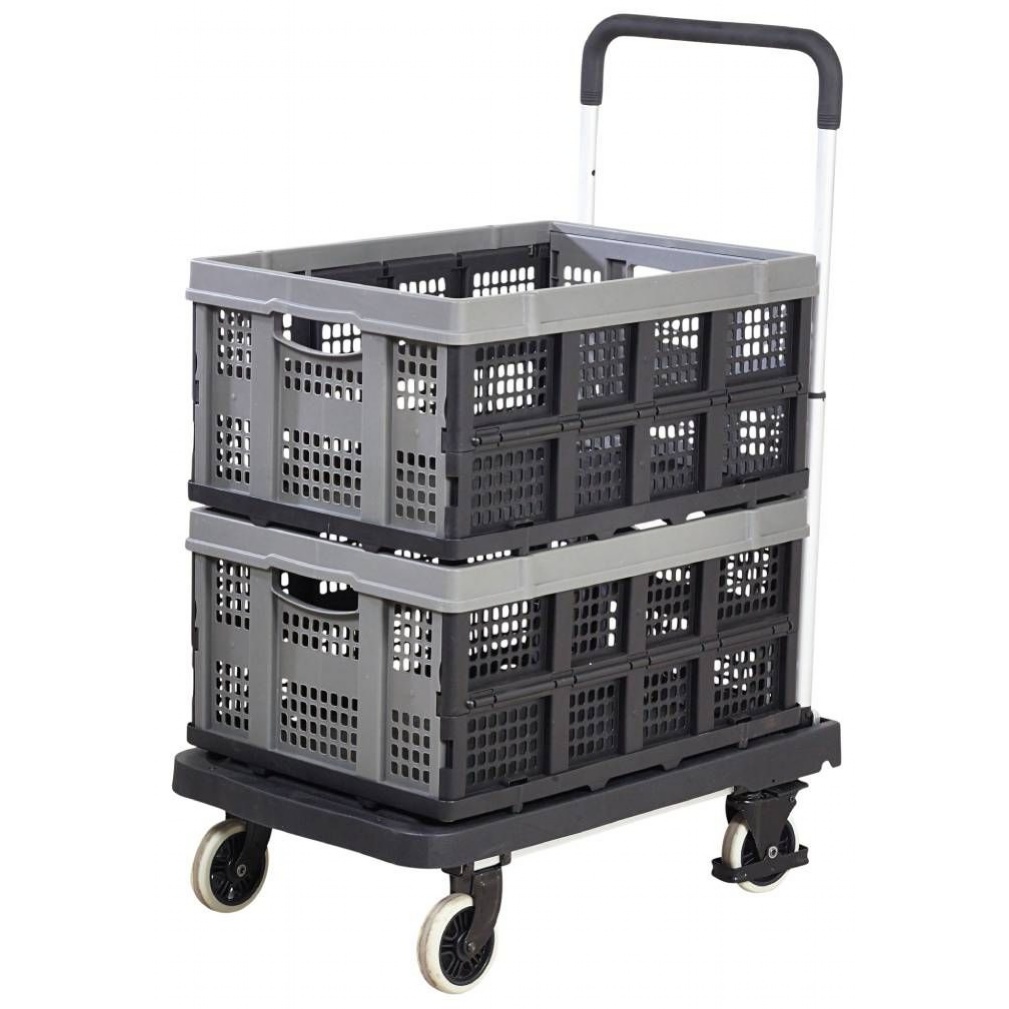 Compact, innovative platform trolley with folding wheels and a telescopic handle. Available as a trolley only or complete with one or two folding boxes.