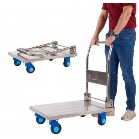 Stainless Steel Folding Platform Truck, 150kg, Silent Castors, UK Made