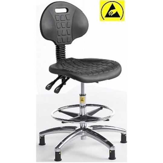 This UK-manufactured ESD high chair is designed for use in electronics, electrical, and static-sensitive environments. Featuring a wipe-clean polyurethane seat and back, it prevents static build-up by dissipating electricity directly to earth.